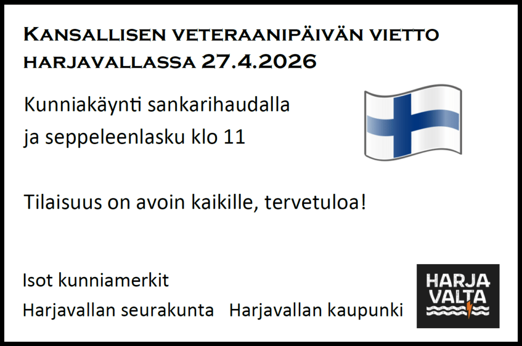 • Kansallisen veteraanipäivän vietto Harjavallassa 27.4.2026 9.4.2026